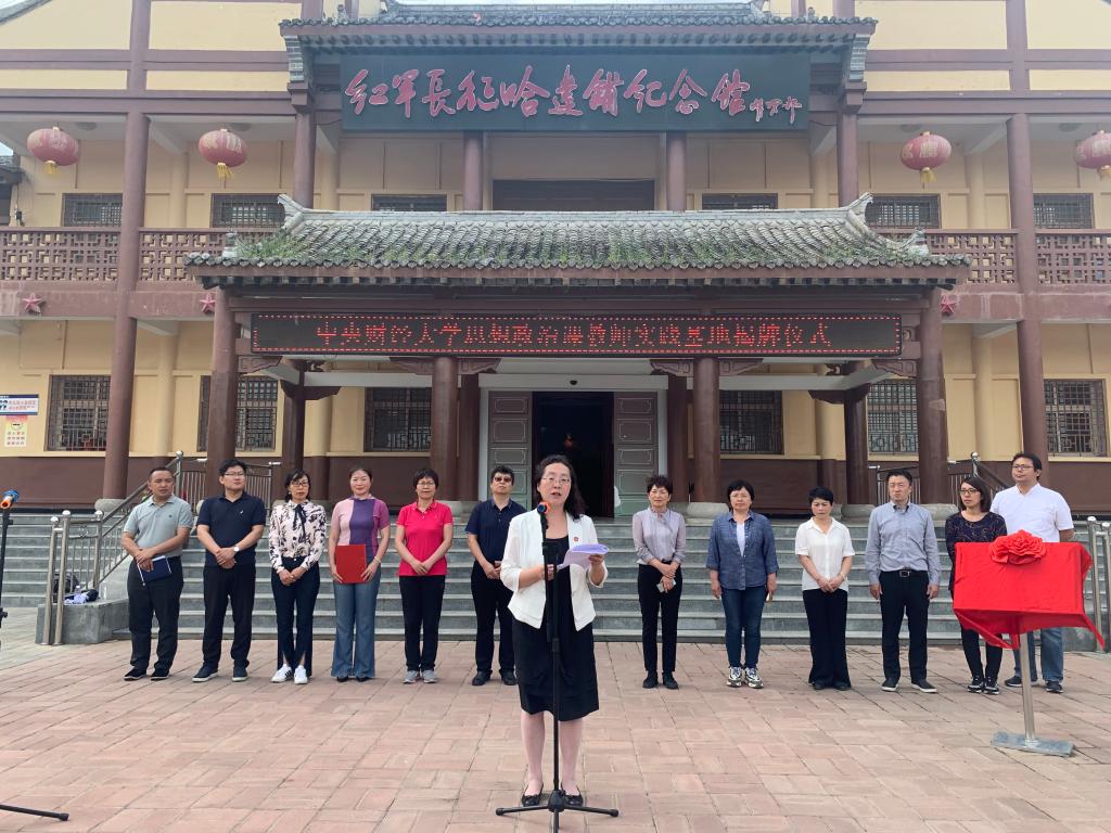 8月4日下午,王瑤琪一行來到哈達(dá)鋪紅軍長征紀(jì)念館,與紀(jì)念館館長路晨霞一起為中央財經(jīng)大學(xué)思想政治課教師實(shí)踐基地揭牌,并參觀考察。王瑤琪指出,哈達(dá)鋪是決定紅軍長征命運(yùn)的“重大決策地”,是長征途中名副其實(shí)的“加油站”,和中央財經(jīng)大學(xué)一樣擁有鮮亮的紅色基因。能在哈達(dá)鋪紅軍長征紀(jì)念館建立思政課教師社會實(shí)踐研究基地,對于學(xué)校思政課改革創(chuàng)新和思政課教師隊伍建設(shè)具有重要意義。學(xué)校將積極整合校內(nèi)資源,統(tǒng)籌專業(yè)力量,研究闡釋好“哈達(dá)鋪精神”,力爭把“哈達(dá)鋪精神”品牌擦亮、打響,把基地打造成為服務(wù)國家戰(zhàn)略、服務(wù)地區(qū)發(fā)展的紅色思想研究高地。